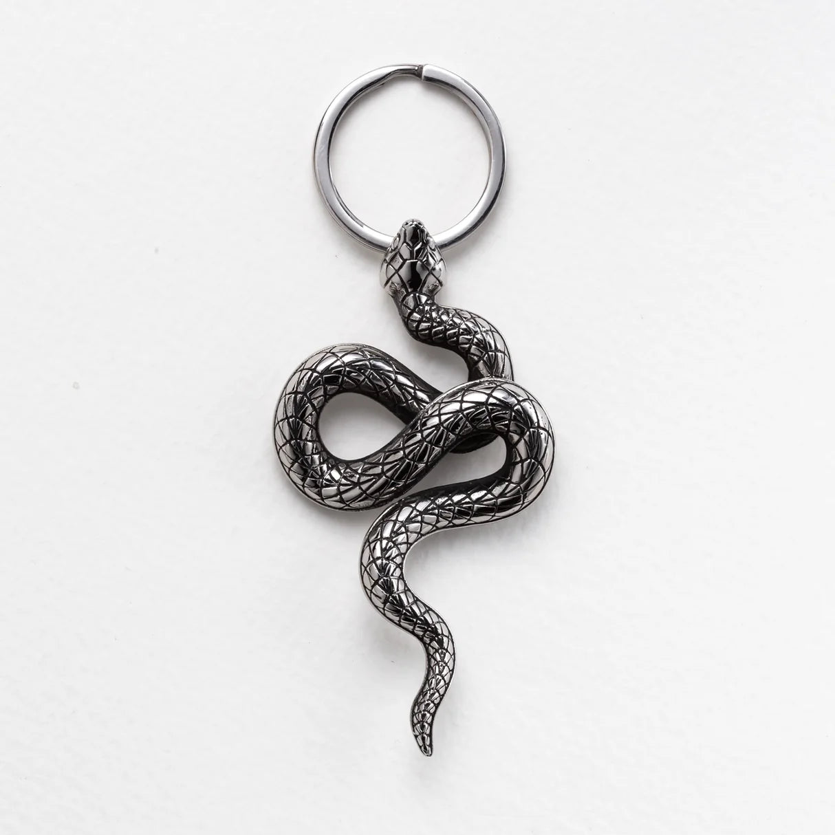 Meet the newest keyring Bite Me! A slithering snake made from super sturdy stainless steel, coiled and ready to strike. Its fangs curve perfectly over the key ring, giving your keys a little extra attitude. Easily attach them to belt loops, bag straps, or anything else using the built-in carabiner fastener.